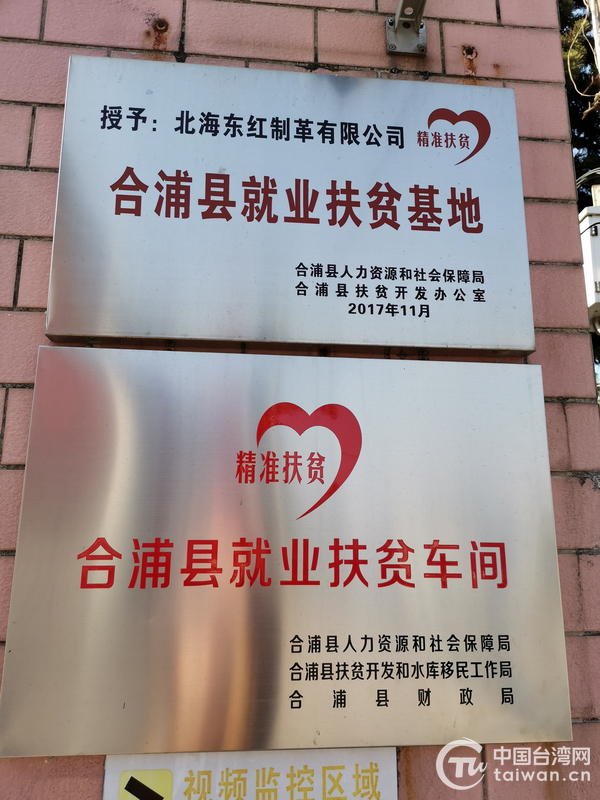 北海東紅制革有限公司與合浦縣廉州鎮合作開辦就業扶貧車間(圖片來源:廣西北海市臺辦)