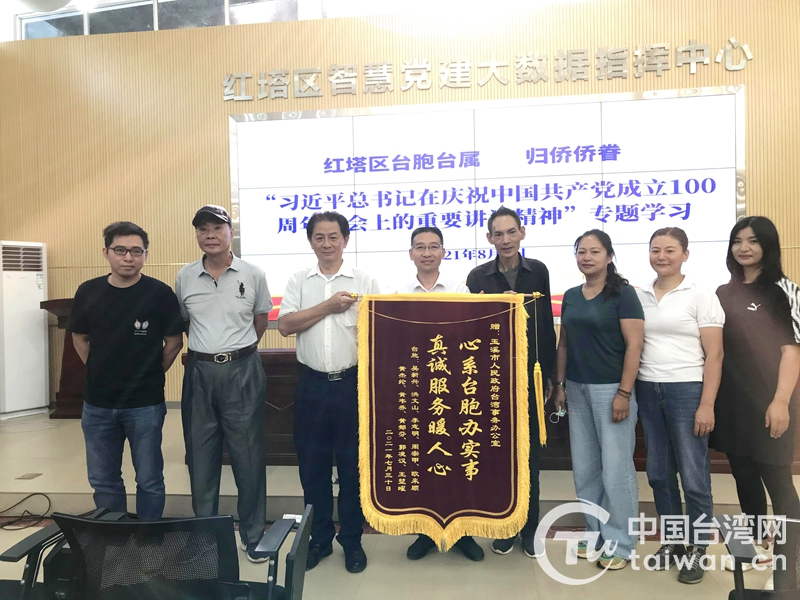 中國臺灣網8月9日訊 2021年8月5日,7名臺胞臺屬代表向云南省玉溪市臺辦贈送錦旗,表達對玉溪市臺辦貼心服務的深深謝意。
