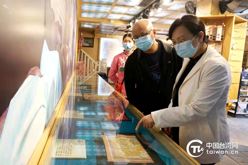3月10日,廣西臺辦主任侯線紅(右一)在陽朔縣臺資企業世外桃源了解文創產品。(中國臺灣網 發)