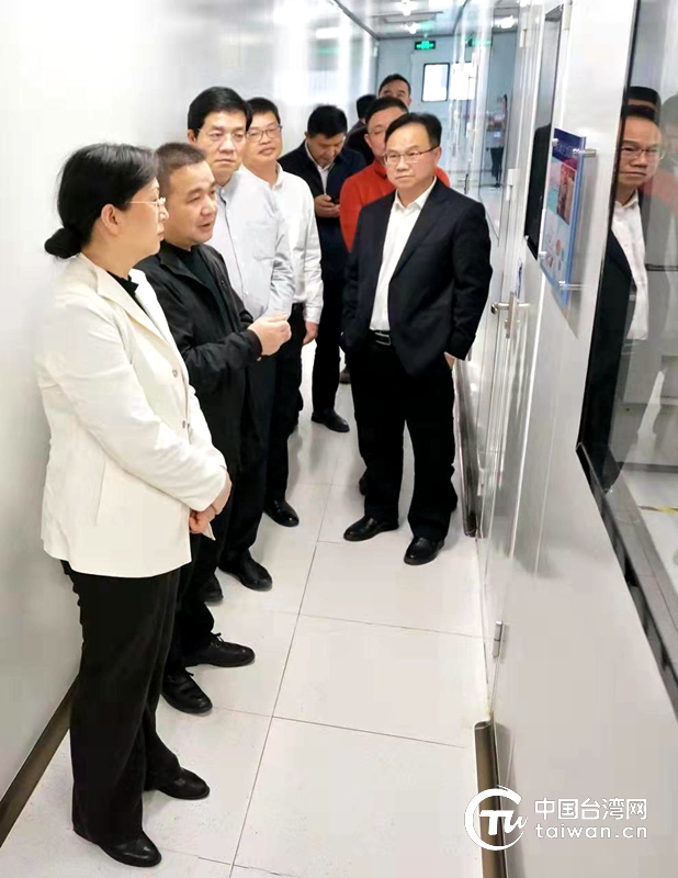 3月10日,廣西臺辦主任侯線紅(左一)考察桂臺合資企業桂林芯隆科技有限公司生產流程。(中國臺灣網 發)