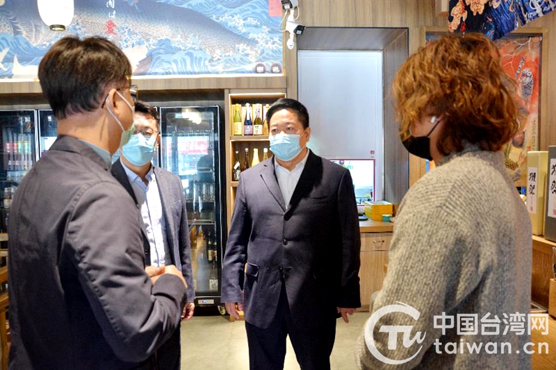 在臺資餐飲店“泉樂道一番酒場”,薛興海表示,市委臺港澳辦將認真貫徹落實全市疫情防控工作部署要求,積極為駐濟臺資企業做好服務,希望企業堅定信心,抓好疫情防控和生產經營,實現高質量發展,為推動濟南市餐飲市場消費升級、建設國際消費中心城市做出貢獻。