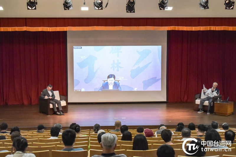 開(kāi)幕式后,西安碑林博物館副館長(zhǎng)劉東平和長(zhǎng)期在臺(tái)推廣書(shū)法教育的臺(tái)灣藝術(shù)大學(xué)教授李郁周,通過(guò)兩岸視頻連線的方式,舉辦以“書(shū)法的時(shí)代美感與意義——從西安碑林著名碑藏談起”為主題的書(shū)藝交流講座。