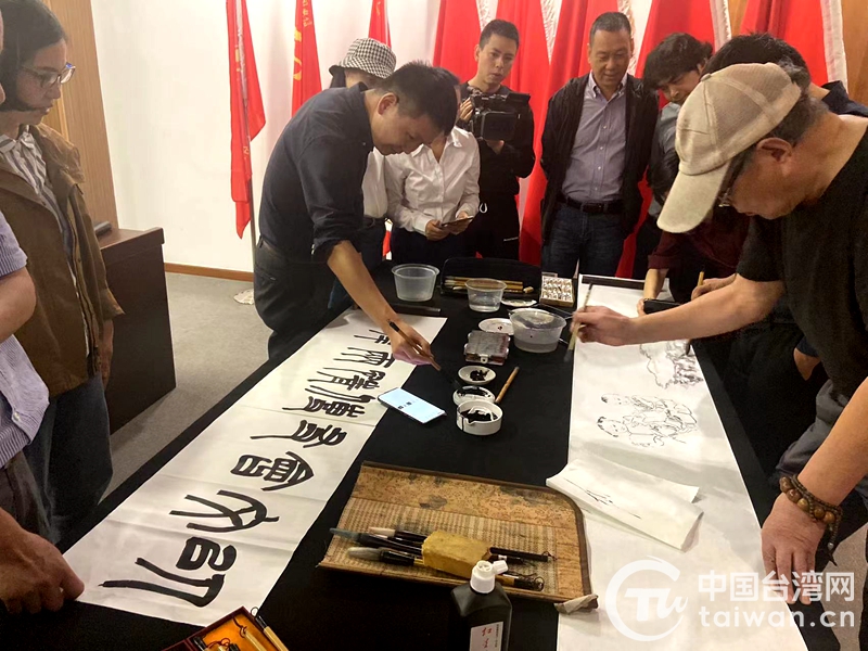 在書寫完“兩岸一家親”的作品后,溫州鐫墨樓魏碑書會導師林光進表示,我們以書畫為媒,把范圍擴大,同臺灣地區的書畫愛好者,也是志同道合,我們文化相通,同文同種同源,希望今后多走動、多交流。