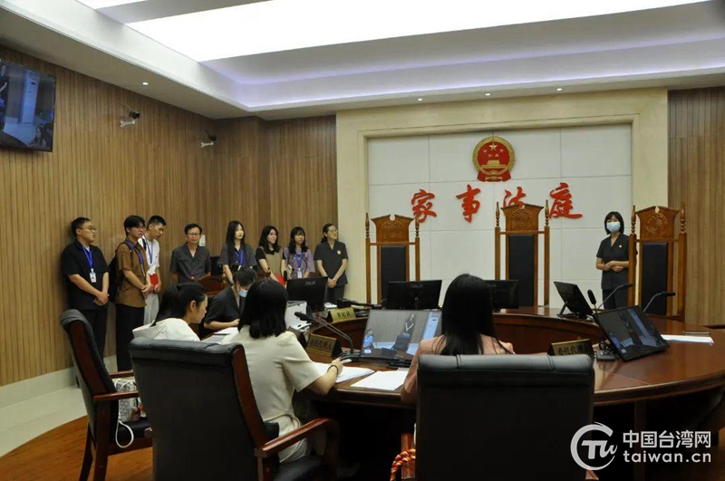 當(dāng)天,臺灣青年學(xué)生走進(jìn)南湖法庭,參觀了法官工作室、科技法庭、遠(yuǎn)程調(diào)解室等場所。法庭干警介紹了法庭的基本情況,以及融入基層社會治理,調(diào)處化解矛盾的亮點(diǎn)舉措。