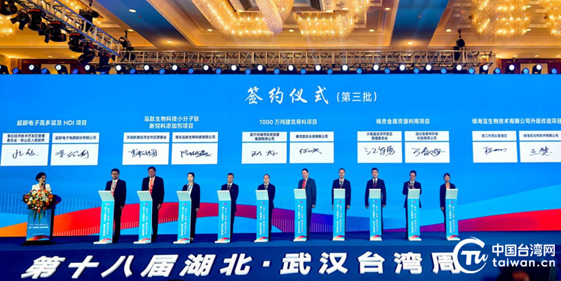 鄂臺企業家代表現場簽約。(中國臺灣網發)