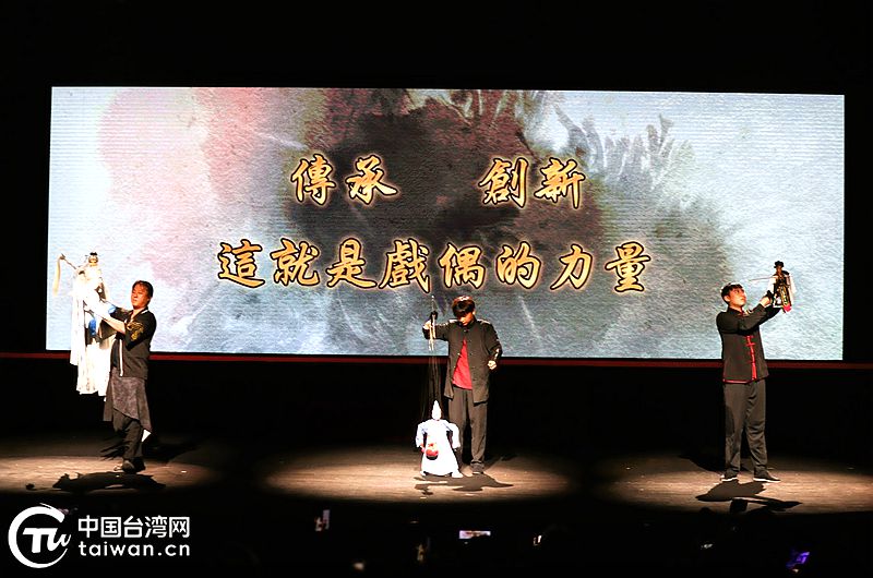 泉州提線木偶、掌中木偶與臺灣霹靂布袋戲同臺展演。(中國臺灣網(wǎng)發(fā))