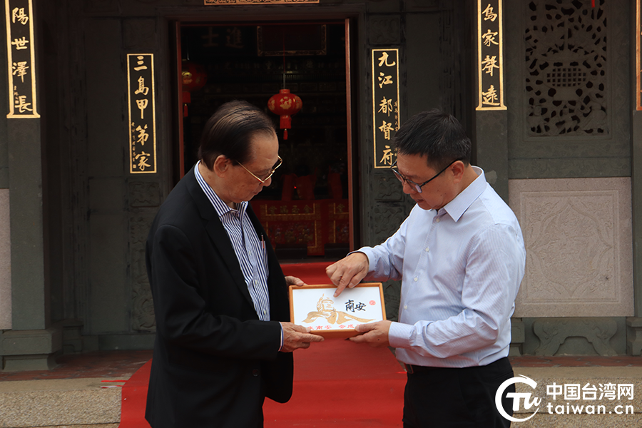 南安市臺辦主任贈送“來南安會成功”磚雕畫(中國臺灣網發)