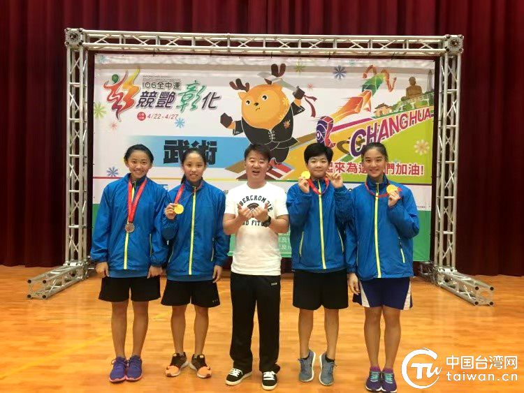 肖進才與他的臺灣學生們一起參加比賽。(中國臺灣網發)