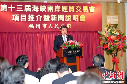 3月18日,作為大陸最早舉辦兩岸經(jīng)貿(mào)展會和對臺經(jīng)貿(mào)政策先行先試的重要窗口、“第13屆海峽兩岸經(jīng)貿(mào)交易會”開幕前,為隆重其事福州市政府在香港舉辦項目推介會,副市長陳為民到會披露福州建設(shè)及發(fā)展閩、港、澳、臺經(jīng)貿(mào)合作新態(tài)。中新社發(fā) 鄭祚聲 攝