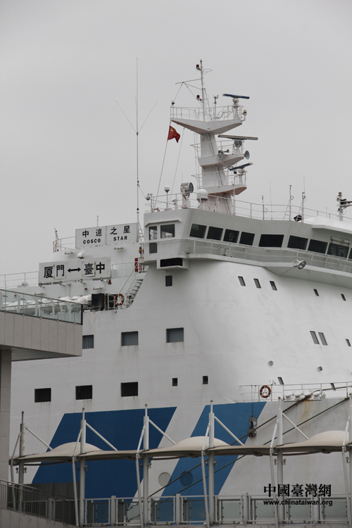 停泊在廈門港的直航臺灣的“中遠之星”大型客滾輪。(中國臺灣網(wǎng) 扶海濤 攝)