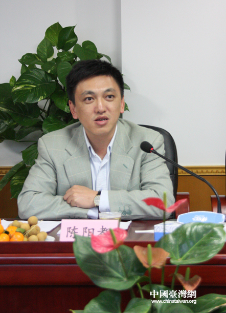 廈門市港口管理局政策法規(guī)處處長陳陽都向記者介紹廈門市建設(shè)東南國際航運中心的相關(guān)情況。(中國臺灣網(wǎng) 扶海濤 攝)