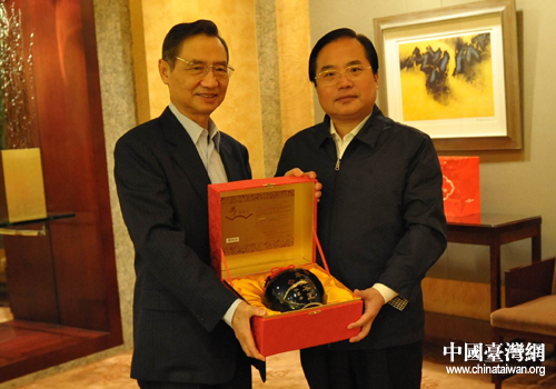 雙發互贈禮物。(圖片來源:青島市臺辦)