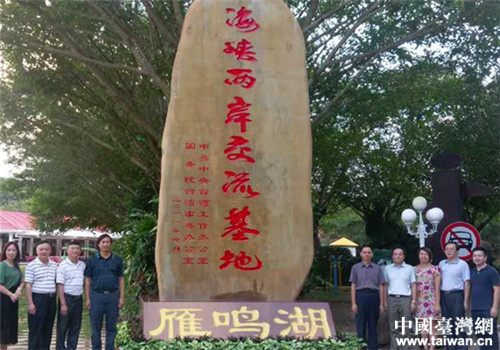 圖為韶關市委臺辦文火山主任(左三)和梅州市委臺辦吳壽康主任(左四)在海峽兩岸交流基地示范點——梅縣區雁鳴湖旅游度假村。右四為韶關市委臺辦羅哲春副主任,右五為梅州市臺辦孔國泉副主任,左二為梅縣區臺辦李順華主任。