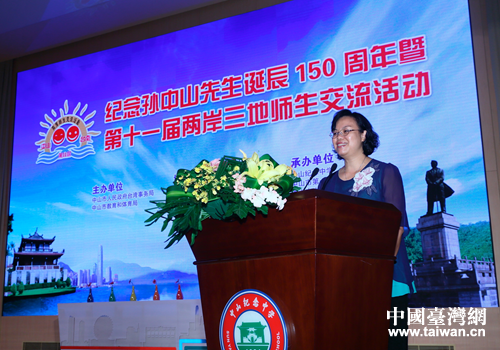 中國臺灣網10月8日中山訊 9月23日,紀念孫中山先生誕辰150周年暨第十一屆兩岸三地師生交流活動開幕式在中山紀念中學隆重舉行。中共中山市委常委梁麗嫻,廣東省海峽兩岸交流促進會副會長林華軒,中山市委統戰部副部長、中山海外聯誼會副會長鄭向榮,中山市人民政府臺灣事務局局長林慶和,中山市教育和體育局局長李長春,中山市臺商投資企業協會會長施育舒,中華海峽政經文教交流協會理事長鮮正樺,臺灣海峽兩岸文教經貿宗教交流協會理事長蔡明堂,臺南市教育及兒童青少年發展會理事長施俊鈞等領導、嘉賓出席了活動。