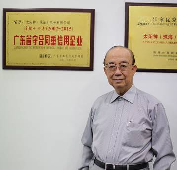 自1996 年起,太陽神電子就被中國電子組件行業協會評為“中國電子組件百強企業”,并榮獲珠海外商投資企業協會頒發的“效益和出口雙優企業獎”。2005 年楊永祥被評為年度ZHTV珠海經濟年度人物,同年又被授予珠海市榮譽市民。