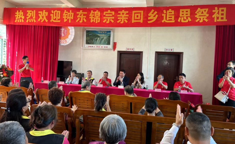 歡迎會(huì)上,臺(tái)灣東錦宗親贈(zèng)送臺(tái)灣區(qū)鍾姓宗親總會(huì)恭印的《鐘姓大宗譜》給龜形宗親,龜形永志會(huì)長(zhǎng)贈(zèng)送《蕉嶺鐘姓史話》志書給東錦宗親,加深了解兩岸宗族宗親更進(jìn)一步加深兩岸同根同脈宗族脈系的聯(lián)誼情。歡迎會(huì)上永志會(huì)長(zhǎng)接受臺(tái)灣鍾姓宗親祭祖團(tuán)敬贈(zèng)的“祥光福地,恩澤千秋”的錦旗,接著徐溪龜形永志會(huì)長(zhǎng)回贈(zèng)東錦宗親寫有:“情系桑梓彰厚愛,祖德不忘顯真情”的錦旗。