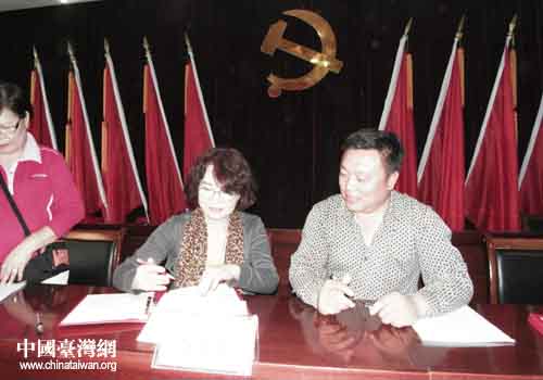 參訪團代表與農6師101團3連簽署友好合作意向書。(圖片來源:新疆生產建設兵團臺辦)