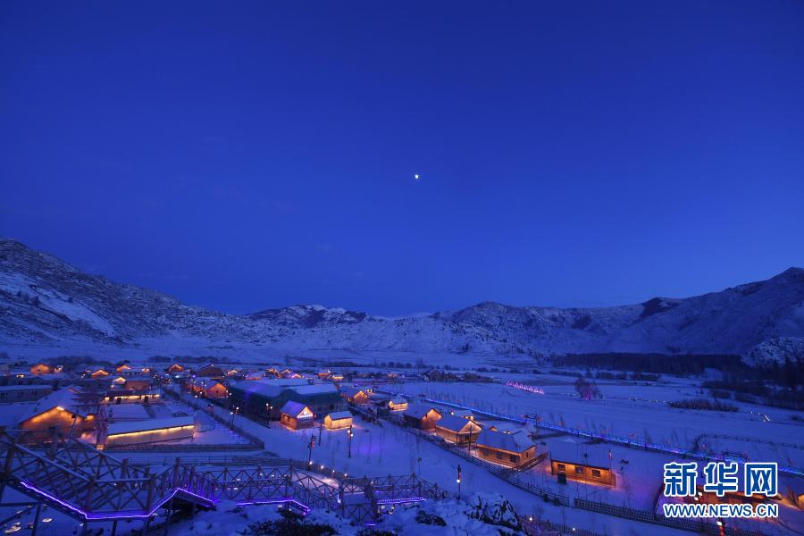 新疆阿勒泰地區(qū)富蘊縣可可托海鎮(zhèn)塔拉特村位于額爾齊斯河源頭附近,被譽為“額河第一村”。冬季夜幕中的塔拉特村,在燈光的映襯下如同冰雪童話世界。