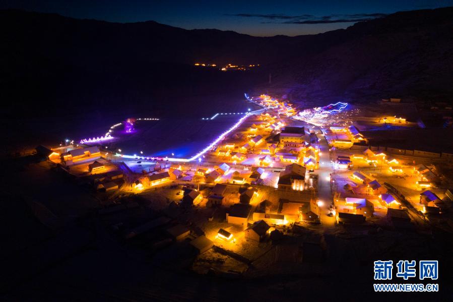 這是12月25日拍攝的塔拉特村夜景(無人機照片)。新華社記者 沙達提 攝