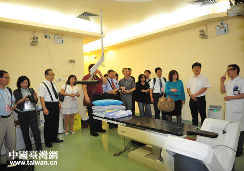 考察團參觀桂康醫(yī)院射波刀治療中心。(圖片來源:廣西臺辦)