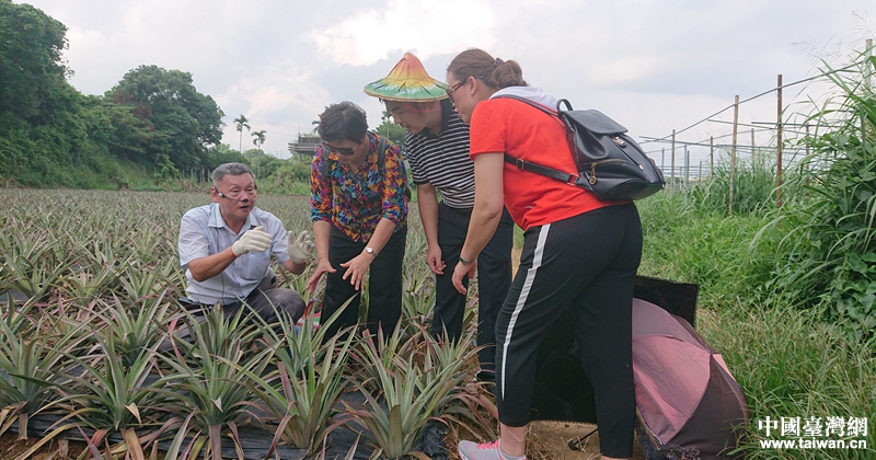 大樹休閑農業園區理事長謝坤淞介紹鳳梨種植情況。(圖片來源:河池市臺辦)