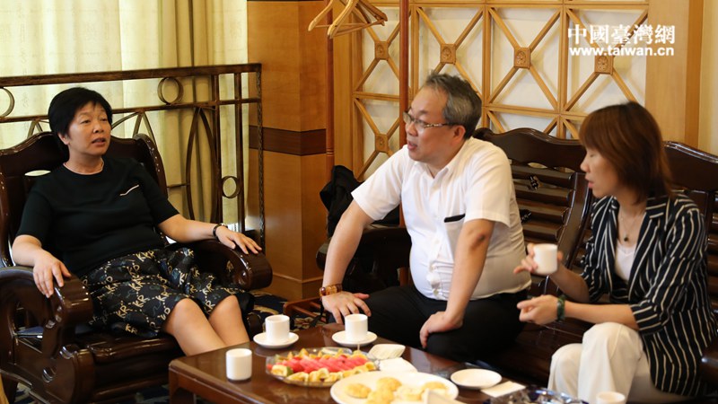 賀州市委常委、統戰部部長唐敬春(左一)與臺灣兩岸青年農業交流總會理事長張茂林(中)會談。(圖片來源:廣西賀州市臺辦)