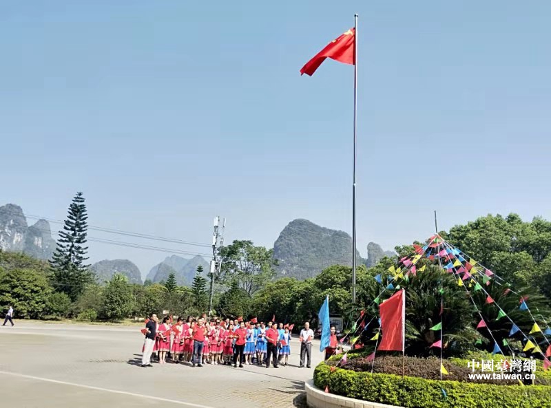 臺企桂林陽朔山水旅游開發有限公司開展升國旗、唱國歌活動(圖片來源:廣西桂林市陽朔縣臺辦)