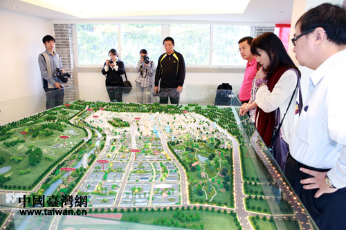 2013年9月6日,臺灣媒體高管參觀桂臺(賀州)客家文化旅游示范區(qū)規(guī)劃沙盤。(廣西臺辦供圖)