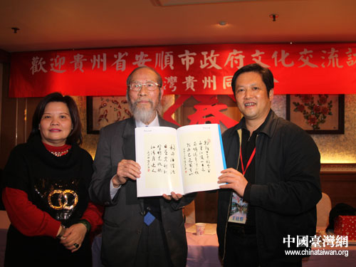 貴州鄉親向交流團團長王廷愷贈送詩集(安順市臺辦黃凱 攝)