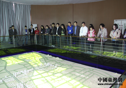 考察交流團一行正在觀看多媒體產業(yè)規(guī)劃展盤。(貴陽市臺辦 李慶斌 攝)