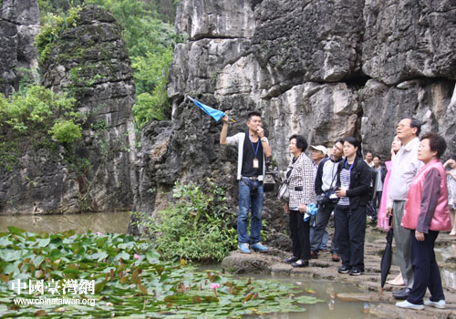 中國臺灣網5月31日貴陽消息 日前,臺灣青年菁英考察交流團一行先后踏訪了黃果樹瀑布、天星橋、荔波小七孔、西江千戶苗寨、青巖古鎮等貴州省風景名勝和歷史古跡。