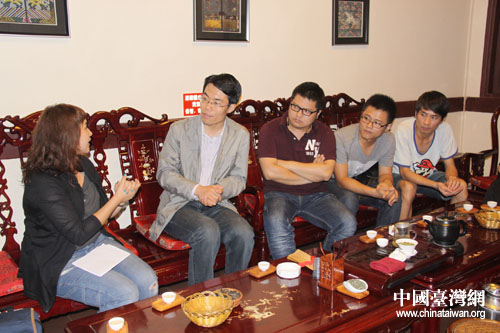臺(tái)灣東森電視臺(tái)《生活接力棒》欄目組采訪貴陽春黔相聲工作室“80后”相聲演員。(貴陽市臺(tái)辦 胡珊珊 攝)