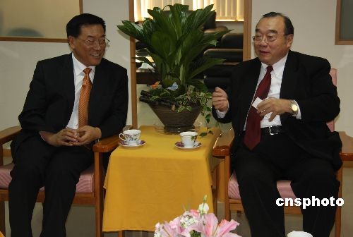 6月7日,中華全國(guó)歸國(guó)華僑聯(lián)合會(huì)主席林軍一行8人組成的訪問(wèn)團(tuán)抵達(dá)臺(tái)北,在臺(tái)北重慶南路拜會(huì)臺(tái)灣華僑救國(guó)聯(lián)合總會(huì)理事長(zhǎng)簡(jiǎn)漢生。這是中華全國(guó)歸國(guó)華僑聯(lián)合會(huì)主席首次赴臺(tái)訪問(wèn)。 中新社發(fā) 耿軍 攝