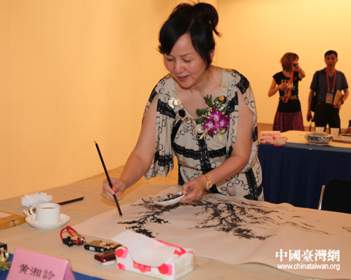 黃湘詅老師在筆會活動現場作畫。她說畫畫是一件很開心的事。(中國臺灣網 李典典攝)