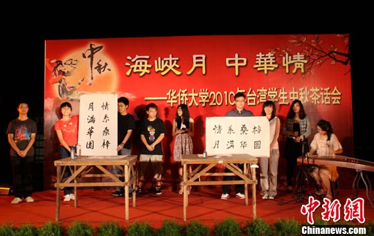 華僑大學(xué)副校長(zhǎng)關(guān)一凡到場(chǎng)與同學(xué)們共同聯(lián)歡,他表示,“華大現(xiàn)有臺(tái)灣學(xué)生108名,其中,今年的臺(tái)灣新生有36名”。華大臺(tái)灣學(xué)生中秋茶話會(huì)至今已經(jīng)舉辦了十幾屆,不僅成為了弘揚(yáng)校園文化的平臺(tái),也有利于兩岸學(xué)子、海內(nèi)外學(xué)生更好的交流。 (孫虹 雷偉軍)