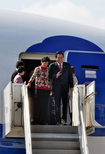 大陸海峽兩岸關(guān)系協(xié)會會長陳云林等人,20日中午搭機(jī)抵達(dá)桃園機(jī)場。陳云林直接下機(jī),他向守候媒體及接機(jī)人員揮手。海峽交流基金會副董事長高孔廉等人前往接機(jī),現(xiàn)場并有大批媒體守候。 “中央社”圖
