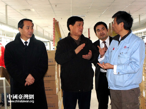 四川省臺辦主任劉俊杰在內江市臺資企業巨騰國際有限公司考察調研。(圖片來源:四川省臺辦)