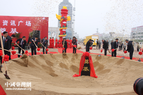 中國臺灣網4月23日德州消息 4月21日,由臺灣藍天集團投資的德州百腦匯資訊廣場項目開工奠基儀式在山東德州隆重舉行。山東省臺辦副主任曹曉武,臺灣藍天集團副董事長、總經理、百腦匯總裁蔡明賢,德州市領導吳翠云、陳先運、滿春重、韓建亭、翟長生,市臺辦主任邢躍升出席儀式。