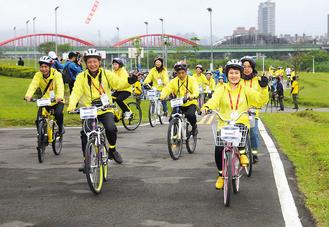 顏志榮昨天中午一馬當先,率領(lǐng)團員騎自行車從古亭河濱公園出發(fā),至華中露營場,騎程約5公里,漫游河濱公園,另一組“挑戰(zhàn)組”從大佳河濱公園出發(fā),騎完25公里。