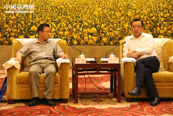 甘肅省委宣傳部長(zhǎng)會(huì)見(jiàn)以楊毅為團(tuán)長(zhǎng)的兩岸記者團(tuán)一行。(中國(guó)臺(tái)灣網(wǎng) 王文英 攝)