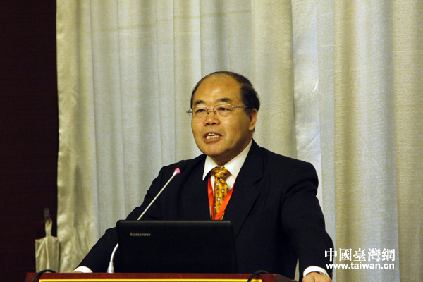 全國臺灣研究會執(zhí)行副會長兼秘書長周志懷為論壇致開幕辭。(中國臺灣網(wǎng)記者 李杰 攝)