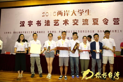 2016兩岸大學(xué)生漢字書法藝術(shù)交流夏令營(yíng)同日開(kāi)營(yíng)。兩岸合編中華語(yǔ)文工具書大陸代總召集人彭興頎,臺(tái)灣總召集人、中華文化總會(huì)秘書長(zhǎng)楊渡為兩岸營(yíng)員授營(yíng)旗。今年的夏令營(yíng)活動(dòng)是繼2014、2015年分別在浙江紹興文理學(xué)院和臺(tái)灣藝術(shù)大學(xué)成功舉辦后,由國(guó)家語(yǔ)委牽頭的兩岸合編中華語(yǔ)文工具書大陸編委會(huì)和臺(tái)灣中華文化總會(huì)繼續(xù)聯(lián)合主辦,由陜西省語(yǔ)委辦接力承辦、西安理工大學(xué)和陜西師范大學(xué)兩所高校協(xié)辦的。來(lái)自陜西和臺(tái)灣高校的十多所高校100名大學(xué)生將在為期8天的時(shí)間里,參加漢字書法藝術(shù)講座、書法教學(xué)、書法創(chuàng)作展示、觀摩碑林等活動(dòng),通過(guò)“體驗(yàn)式交流”,了解兩岸語(yǔ)言文字使用和交流現(xiàn)狀,體驗(yàn)兩岸語(yǔ)言文字與文化的“同根同源”“和而不同”,增進(jìn)理解信任,共同珍惜、尊重和傳承中華優(yōu)秀語(yǔ)言文化,增加對(duì)中華文化的熱愛(ài)和認(rèn)同。