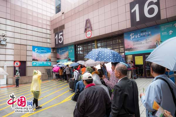 據(jù)了解,臺北旅展是目前兩岸合作舉辦的規(guī)模最大、影響力最強(qiáng)、品牌效應(yīng)最突出的旅游展覽。本屆展會將持續(xù)到11月7日,展會總面積約5773平方米,設(shè)標(biāo)準(zhǔn)展位377個(gè)。其中,大陸展區(qū)展位數(shù)245個(gè),展會面積3816平方米,共有28個(gè)省(區(qū)、市)、新疆生產(chǎn)建設(shè)兵團(tuán)以及東航、南航臺灣分公司等31個(gè)單位、約600人參展。臺北旅展以突出現(xiàn)場交易為特色,各大旅行社均推出了針對此次臺北旅展的優(yōu)惠價(jià),臺北民眾更是一早便冒雨在展館外排隊(duì),等待入場采買優(yōu)惠線路產(chǎn)品。