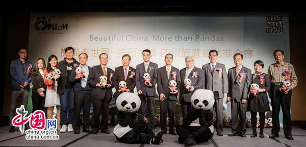 11月4日晚,四川旅游營銷代表團(tuán)在臺北舉辦了“熊貓走世界-美麗中華”四川旅游推介會,現(xiàn)場嘉賓以及臺北當(dāng)?shù)芈眯猩纭⒚襟w等約100人參會。臺北旅行商業(yè)同業(yè)公會理事長吳志健、臺灣品質(zhì)保障協(xié)會副理事長陳善國分別致辭,他們希望此次活動向臺灣民眾展現(xiàn)四川豐富的旅游資源,推出更多的旅游產(chǎn)品,更好地讓臺灣民眾感受四川獨(dú)特的自然風(fēng)光、歷史文化和民族風(fēng)情。