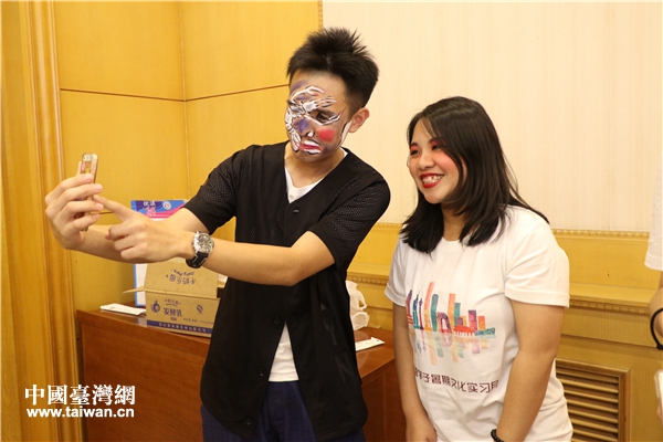 畫好京劇臉譜的兩岸青年合影留念。(中國臺灣網 趙苗青 攝)