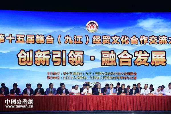 中國臺灣網(wǎng)8月30日九江訊(記者 雍紫薇) 今天上午,第十五屆贛臺(九江)經(jīng)貿(mào)文化合作交流大會(簡稱贛臺會)在江西九江開幕。中共中央臺辦、國務院臺辦主任張志軍,江西省省長劉奇,臺灣三三企業(yè)交流會會長江丙坤,全國臺企聯(lián)會長王屏生等出席了大會,本屆“贛臺會”參會人數(shù)約800人左右,其中臺灣嘉賓約500人。現(xiàn)場共簽約79個臺資入贛項目,簽約合同金額達40.6億美元。