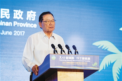 在2017海南投資推介會暨項目簽約儀式上,前來參會的臺灣海峽交流基金會前董事長、海峽兩岸經貿文化交流協會會長江丙坤,用兩個數字講述了他與海南之間的故事以及對海南的看法,并建言臺灣企業重點關注海南熱帶特色高效農業、旅游業和健康產業,抓住海南投資新機遇。