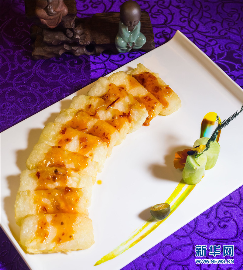 近日,三亞南山新推出用冬瓜制作的名為“泰汁鱈魚片”素菜。新華網發(陳文武攝)