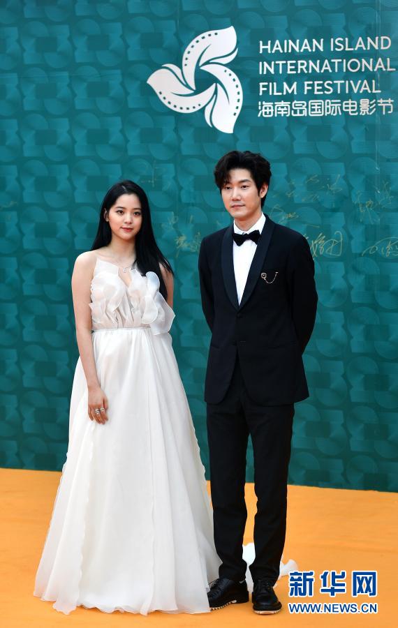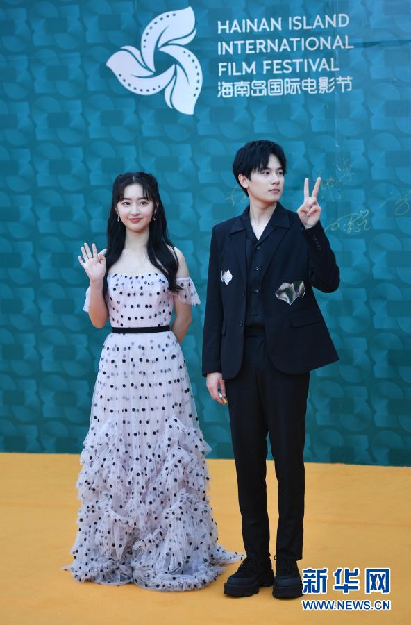 12月12日,演員鄧恩熙(左)、胡先煦亮相電影節(jié)紅毯儀式。新華社記者 郭程 攝