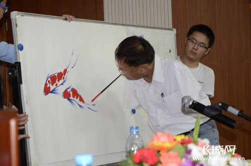 9月11日下午,臺灣知名口足畫家謝坤山在“學·問”講堂以《挑戰生命極限,演繹傳奇人生》為主題與河北聯合大學輕工學院師生分享人生的淬煉歷程。來自各學部的200余名師生聆聽了講座。